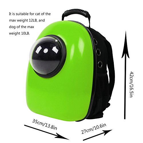 -. Feature : Semi-sphere window design / Fashion and cute outlook / Fit cats up to 12 pounds and dogs up to 10 pounds / Dimensions: 13.8"L x 10.6"W x 16.5"H. Carrier Weight: 52.9OZ / Perfect carrier for travel, with removable pad,several big vents,security leash, top & side entries,mesh panels