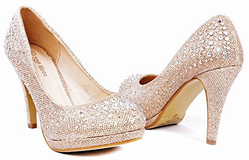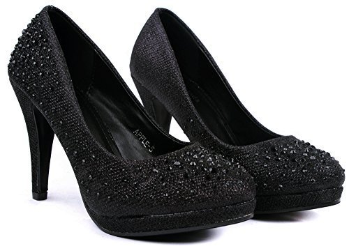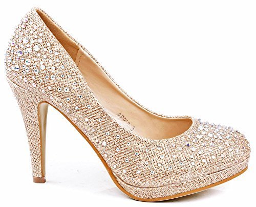 Binding : Apparel Product Description This is a classic, dazzling pump that perfect for special occasions and formal events.This pump shines with a rhinestone encrusted surface and has a heel that measures approximately 3.75 inches, with a half inch platform, perfect low platform pump with a great heel height. Find extra comfort from the padded sole, while staying fashionable and glamorous. 0