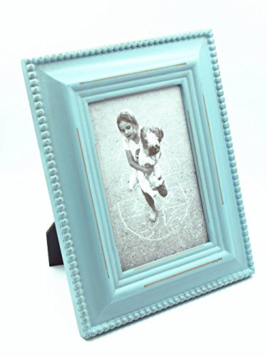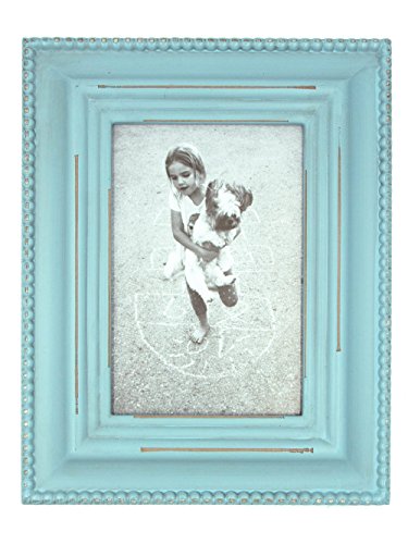 4x6 Cyan Wood Picture Frame with Glass Front - Baroque style Antiquated - Table Desk Top or Wall Hanging