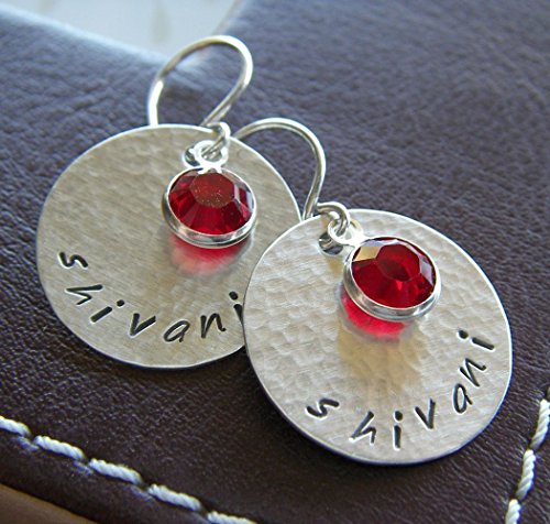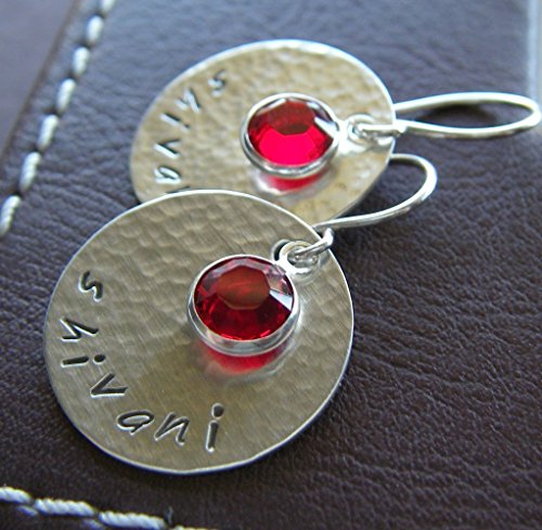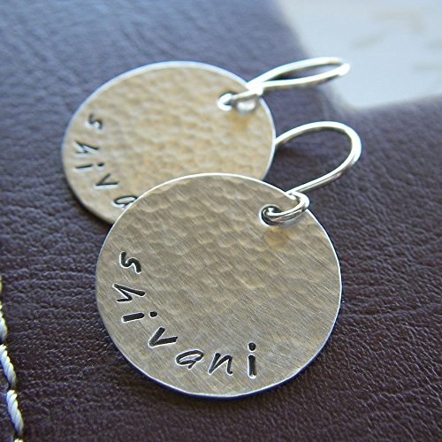-. Title : 0.75" Round Textured Dangle Earrings Custom Hand Stamped Sterling Silver Personalized Jewelry
