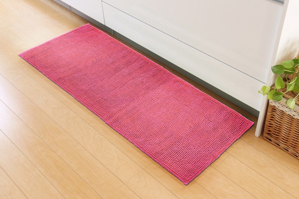 シンプルな無地のマットです。パイルの直径6.5mmと太く、長さを15mmと短くし、密度を上げ、パイルが立つように仕上げました。踏んで頂いた時の心地よさ、ボリューム感にこだわった逸品です。素材にはマイクロファイバーを使用していますので驚異的な吸水力、優れた速乾性・抜群の耐久性があります。裏にはすべり止め加工を施しています。ご家庭の洗濯機で洗えます(ネット使用)ので、清潔にご使用頂けます。