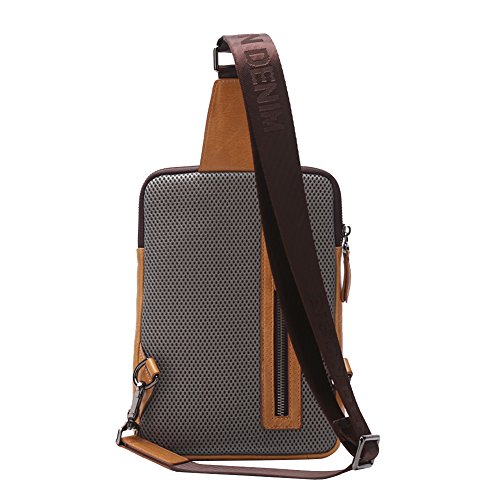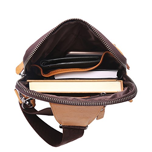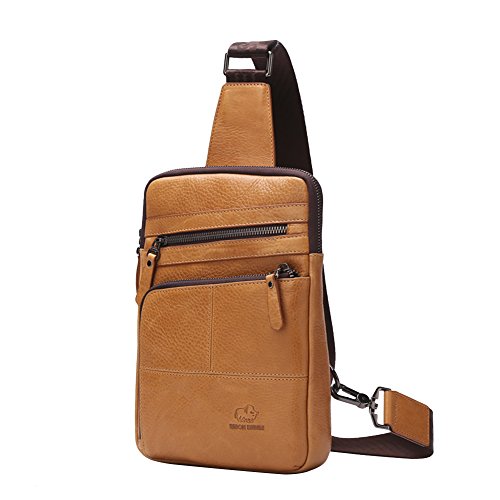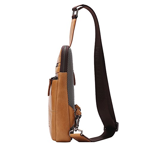 BISON DENIM Mens Genuine Leather Cross body Satchel Sling Bag Unbalance Shoulder Bag Chest Bags