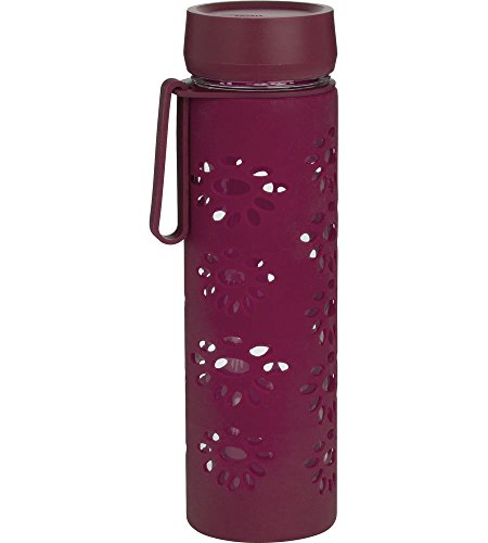-. Feature : Silicone Wrapped Glass Bottle Plum Features / Bottle is BPA free. / Capable of holding up to 17 ounces. / Includes a health and wellness pamphlet for getting a healthier body. / Silicone wrap keeps your water tea or juice chilled without freezing your hand.