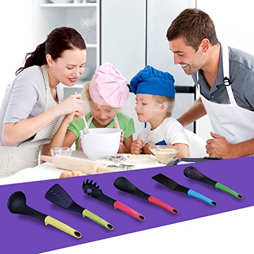 -. Feature : THE ULTIMATE KITCHEN ESSENTIALS STARTER SET AND KITCHEN TOOLS ORGANIZER - The Colorful 7-piece (6 kitchen tools and 1 organizer stand) Kitchen / Serving Utensils Set Includes: Spatula, Slotted Spoon, Slotted Turner, Ladle, Spaghetti Server, Solid Spoon and Organizing 360 Degree Rotating Carousel Stand / Each tool in the set has a special Raised Head Design which makes it possible to put down the tool on the counter without making a mess and makes sure the food stays clean / DISHWASHER SAFE - The kitchen tools can be cleaned in dishwasher or by hand. The kitchen tools set are perfect for use with NON-STICK cookware and bakeware since the nylon heads won't scratch non-stick surfaces. / FDA Approved, BPA free. HEAT RESISTANT up to 410° F (210° C) / MONEY BACK GUARANTEE: In case you don't love the Utensils Set we offer you 30 day, no questions asked, money back guarantee. If you love to cook, you are worth having stylish utensils, easy to access and organized in one place to enjoy your cooking even more. Click the "Add to Cart" button to get your utensils set now!