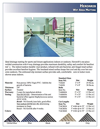 Durable Corporation Heronrib Pool and Wet Area Matting, 2’ x 8’, Black
