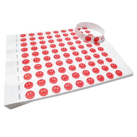 -. Title : 500 Red Happy Face Tyvek Event Wristbands