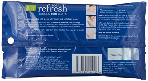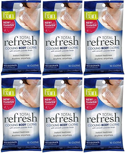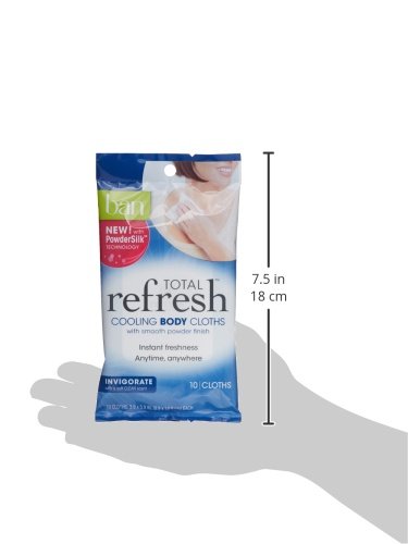 BAN Total Invigorate Cooling Body Cloths cool skin on contact and wipe away sweat to leave you feeling energized with a cool silky touch and light clean scent.