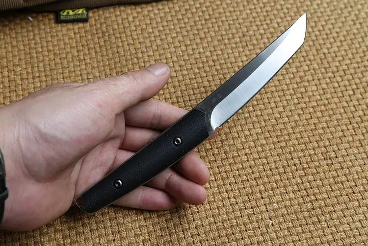 상품 내용 전체 길이: 200 미리메터 블레이드 길이: 98 미리메터 블레이드 두께: 3.5 미리메터 블레이드 재질: 100% 실제 Vg-10 경도: 59-60HRC 블레이드 마무리:새틴 + 돌 세척 핸들 본초l:G10 칼 무게: 115 그램 KYDEX 칼집 무게: 75 그램 칼집: KYDEX