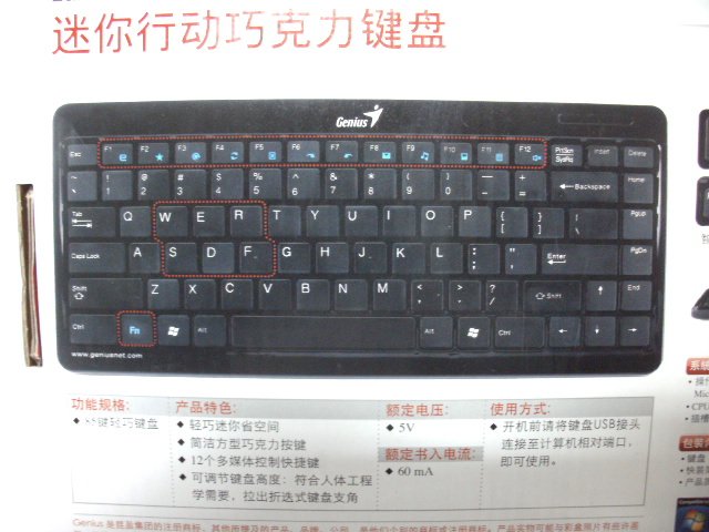 这款键盘采用了普通键盘不常用的巧克力键盘设计,这样降低键盘的整体厚度,保证键盘的便携性。键盘的键程偏短,按键回馈比较温和,用来做打字输入也是不错的选择。