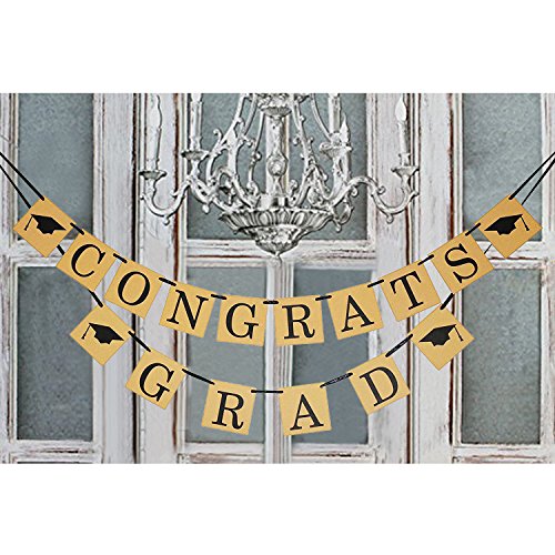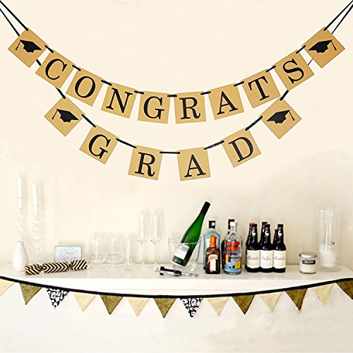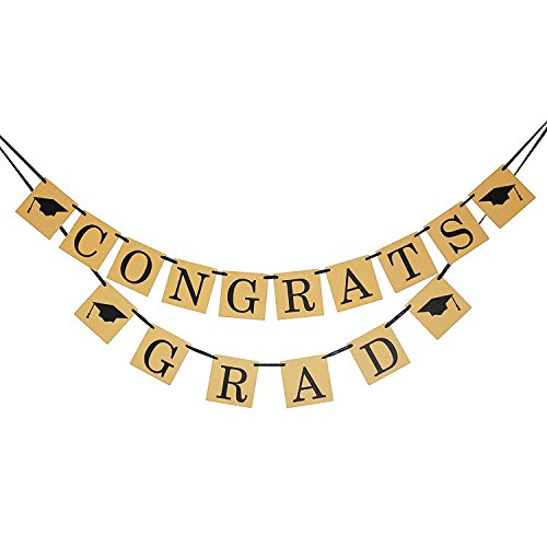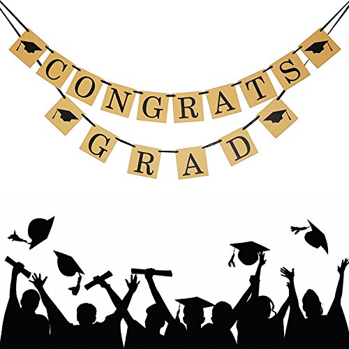 -. Feature : Package comes with 2 banners ,one spell the phrase " CONGRATS ",the other spell the phrase " GRAD ".You can put them together as "CONGRATS GRAD" banner ,or separate them as 2 different banner . / Each Card Measures Approx 12*12cm / 4.7*4.7 inch.Ribbon length is about 3 metres ,that means the ribbon is long enough ,you can tie it off easier wherever you need. / Use it as graduation party decorations or home decor, You can hang the banner on the wall, mantel, cake or dessert table, bedroom or as backdrop at your GRAD party. / Use it as photo props, take photos to share with your family members and friends or as your student's keepsake, when grow up, it will be full of memory. / Notice: the old version of this banner comes to you with the cards and rope separately, and now we are upgrading to new version , the banner comes to you with all the letters pre- strung, just take it out, hang it, that's it !