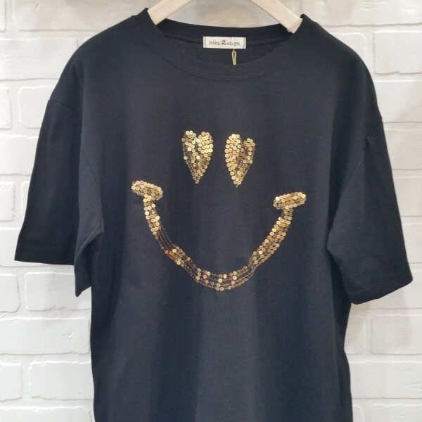 기본티에 스마일 스팽글이 들어가 포인트를 주는 티예요