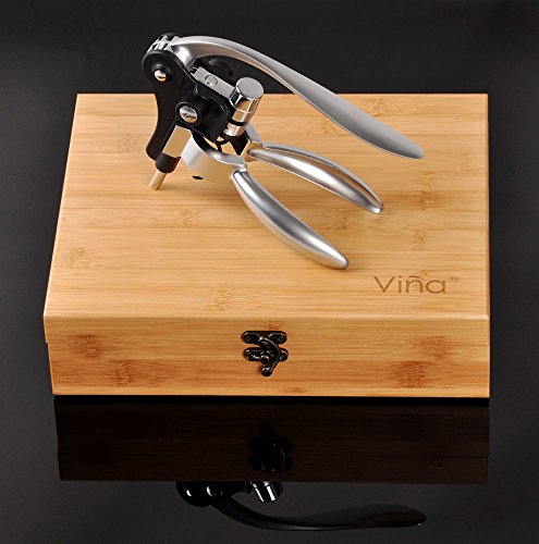 Features: ?Weight: about 53oz ?Bamboo Box Size: (Lx Wx H) 11"x 9"x 2.6" ?Material: Zinc alloy stainless steel ?Package: Bamboo Box With High Quality EVA Lining ?Stainless steel construction ?Attractive bamboo storage case ?Works on all types of red wine bottles; strong, non-stick coated screw will not damage corks ?Extracts cork in three seconds flat, effortless self-pulling action ?Includes a wine opener, foil cutter, pourer, collar, stopper and spiral replacement corkscrews ?Great gift for friends. ?Perfect Christmas Thanksgiving Wedding Gift