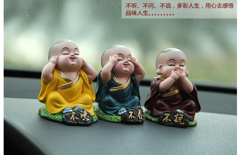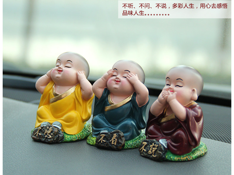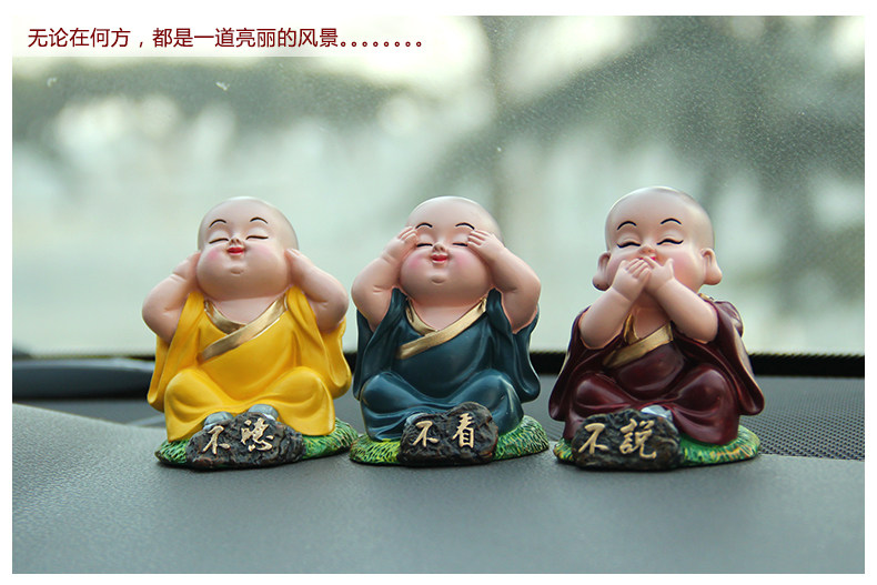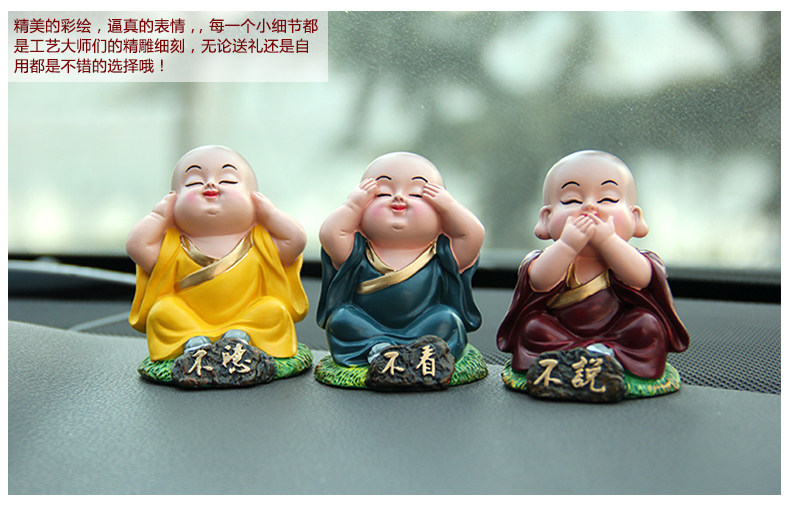 车载创意三不小和尚汽车摆件卡通可爱车内装饰品礼品公仔内饰高档