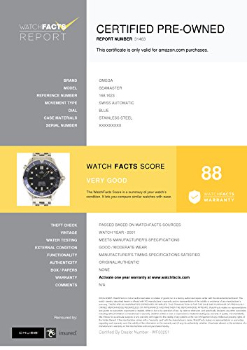 -. Feature : Omega Seamaster 168.1623 with 200.0 millimeters band, stainless-steel bezel and blue dial / Authenticated by WatchFacts. Grade Rating: 88 / Condition: Very good / No papers offered with this watch / Swiss-automatic movement / Watch year: 2001