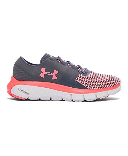 Innovative UA SpeedForm® technology delivers an unprecedented precision fit for unrivaled comfort & zero distraction. Breathable, three-color knit mesh upper locks down your foot & increases ventilation. Seamless heel counter built into the upper for sleek, lightweight structure. Ultrasonic seaming with Bemis tape on lateral & medial sides for next-to-skin support & comfort. Laser-cut perforations for enhanced breathability. Embedded sockliner within cavity of midsole for added cushioning, moisture wicking & seamless comfort. Dual-layer midsole combines Charged Cushioning® on top of Micro G® foam for the ultimate blend of cushioned support & explosive responsiveness. Added cushioning in the heel & strategic flex grooves in the forefoot work with your natural stride. Strategically placed rubber traction covers high impact zones for greater durability with less weight. Offset: 8 mm. Weight: 7.5 oz.. Imported.Feature