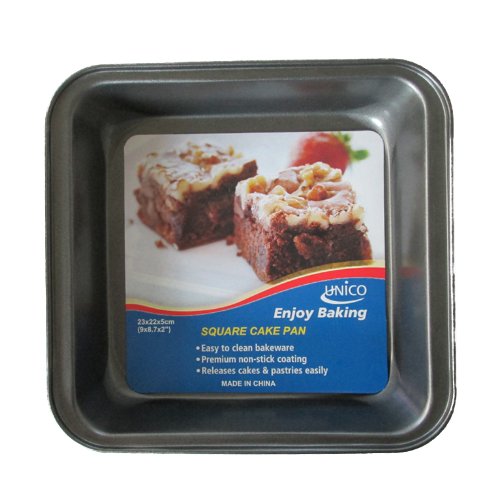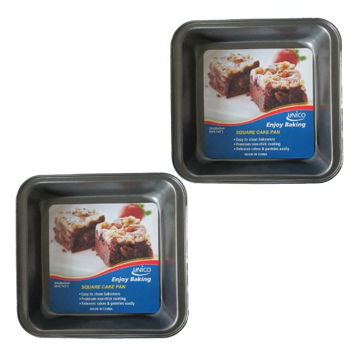 Unico 2 Pack Square 9" x 8.7" x 2" Premium Non-Stick Baking Pan Heavy-Gauge Aluminized Steel