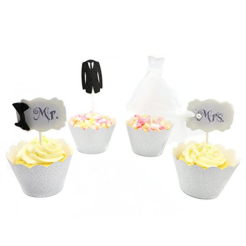 - Included in total 12pcs toppers and 12pcs silver wrappers . 4 types topper shapes are wedding dresses for bridegroom and bride , each of 2 , mr. & mrs. Pattern , each of 4.