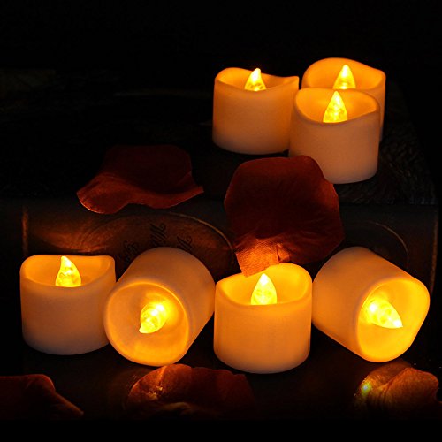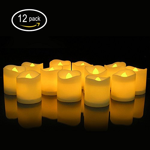 Winfi LED Tea Lights, Electric Candles,Realistic and Bright Flickering Bulb Battery Operated Flameless Candles for Seasonal & Festival Celebration, Warm White and Wave Open, Pack of 12