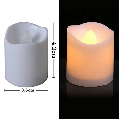 - TECHNICAL DETAILS – Made in Quality PP Plastic, Dimensions: 1.7’’ x1.4’’ (4.2cm x 3.7cm), 12 LED Candles per pack, CR2032 button batteries (included).