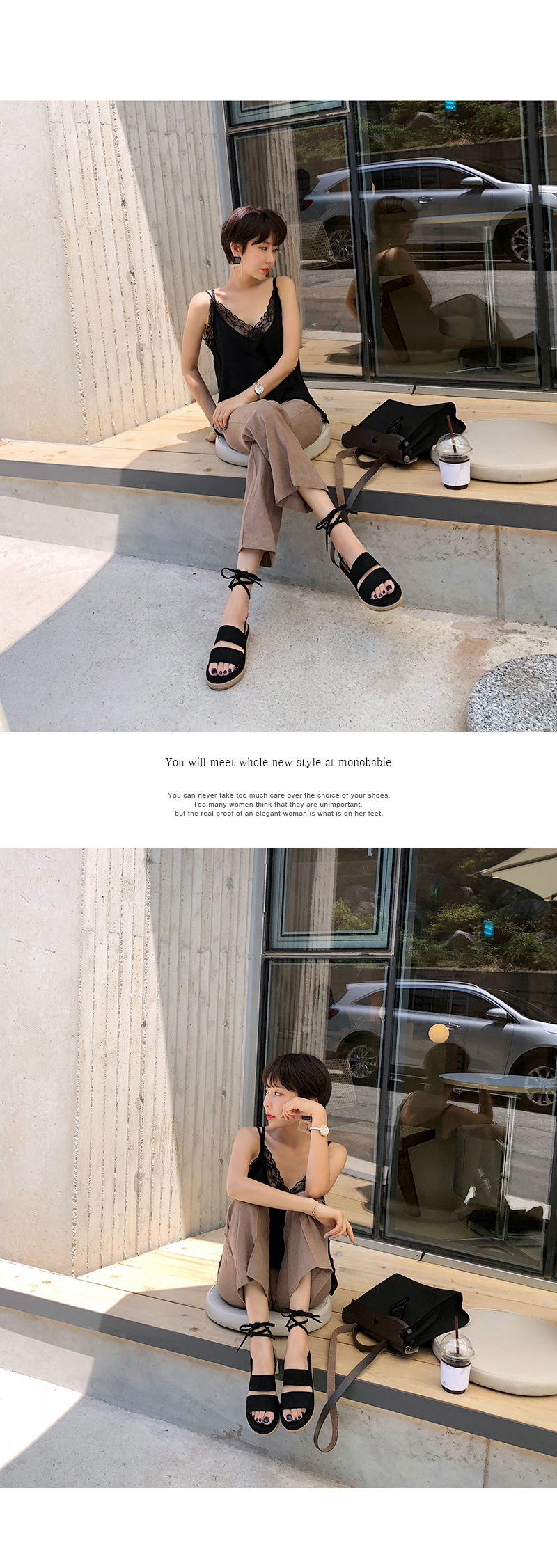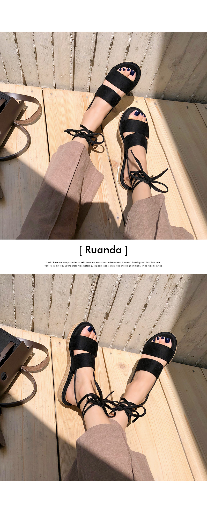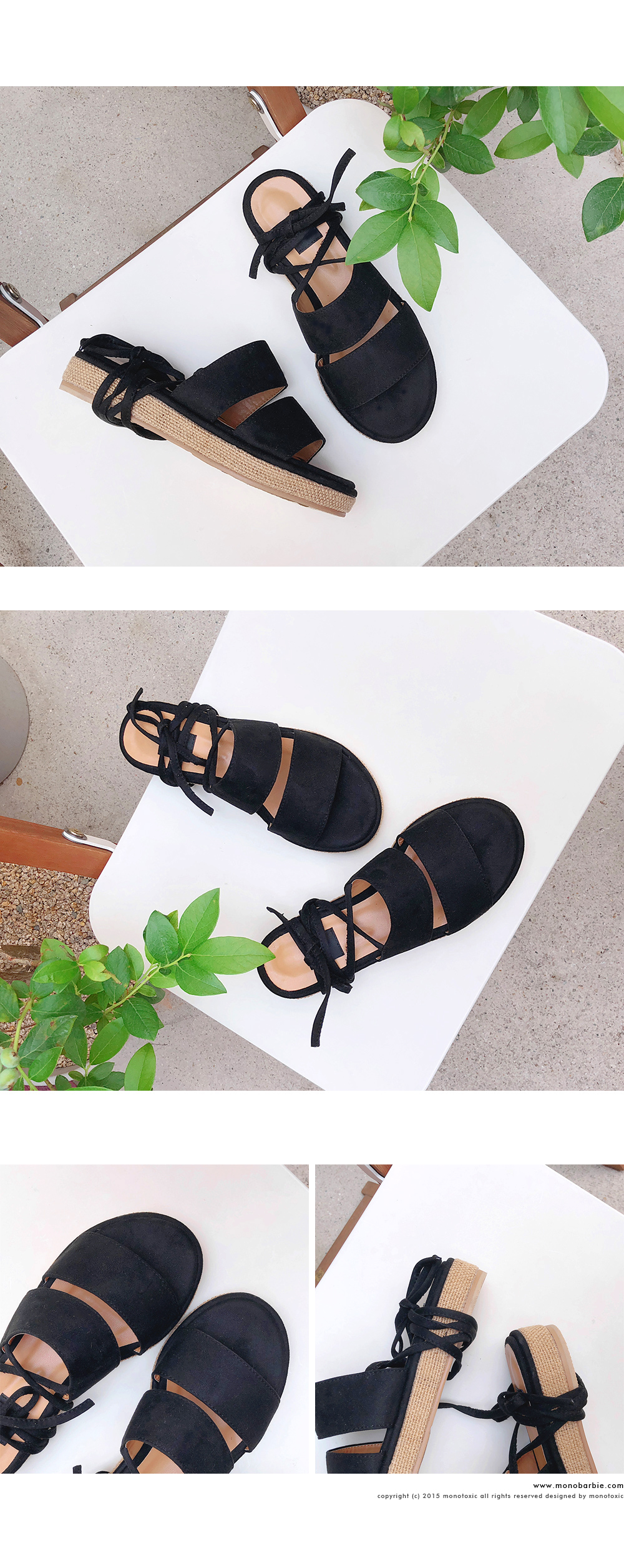 DETAILS - 소재 : 인조스웨이드 라탄 - 컬러 : black - 피팅감 : 정사이즈 / 무게 : 보통인편 - 착화감 : 뒷꿈치 쿠션으로 편안해요 - 모델피팅 : 230