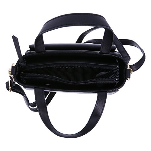 Cute, compact and completely crucial for the woman on the go! The Sage Satchel from designer Christian Siriano features a stylishly smooth outer with one front pocket secured by a magnetic snap, the lined interior features two more pockets--one side zipped and a side slip pocket, large enough for a phone--the satchel closes with a top zip, dual handles with a 4 3/4" drop, and an optional crossbody extender with a length of almost 31". Measures approximately 8 1/2"HX9 1/2"WX4"D. Manmade materials.Feature