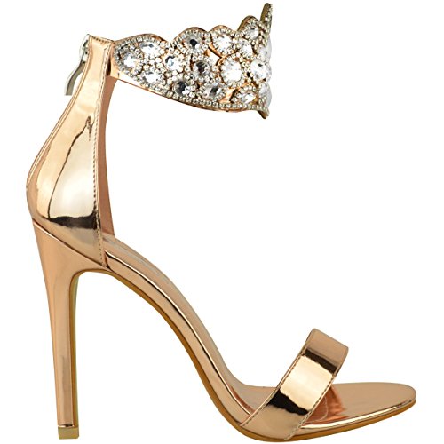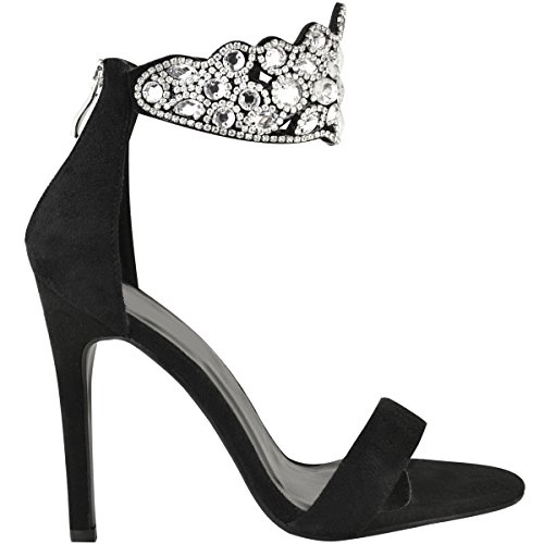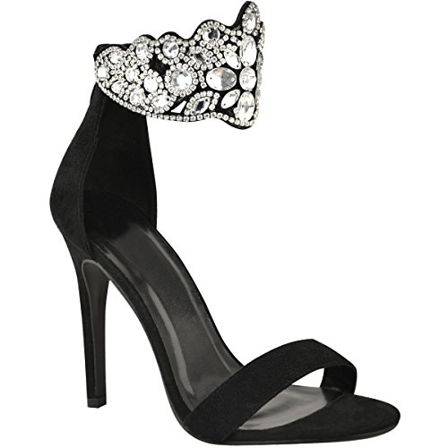 Fashion Thirsty Womens Bridal Diamante Ankle Strap Party High Heel Stiletto Sandals Size
