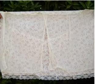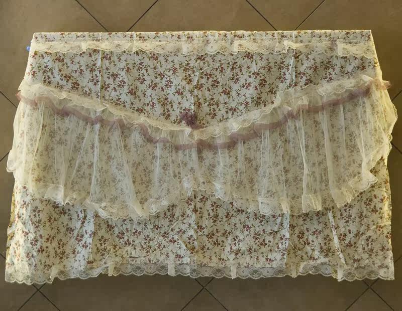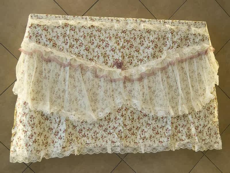 The top and front down is the rose cloth, back down two pieces of transparent lace,lace intermediate split back for wall type LCD TV, desktop LCD can also use. Dustand beautiful.