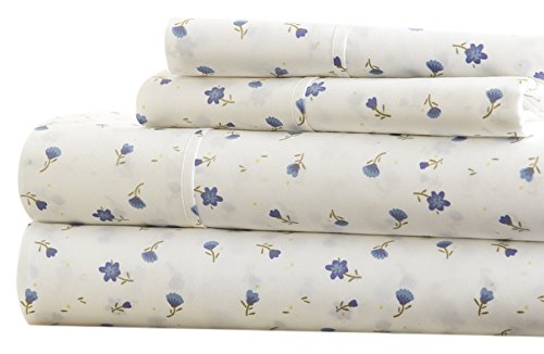 Simply Soft Ultra Soft Floral Patterned 4 Piece Bed Sheet Set, Full, Light Blue