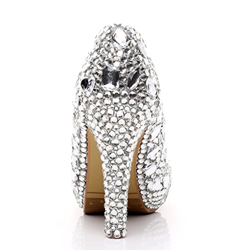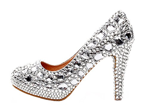 Jiandick Womens Rhinestone Platform Stiletto High Heels Wedding Prom Evening Dress Pumps