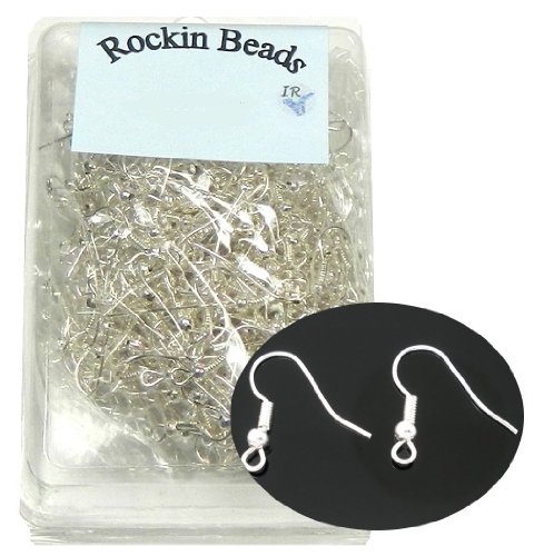 Rockin Beads Brand, 300 Basic Earring Silver Plated Fishhook with 18mm Ball and Coil with Open Loop 21 Gauge. 150 Pairs.