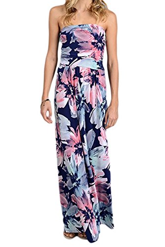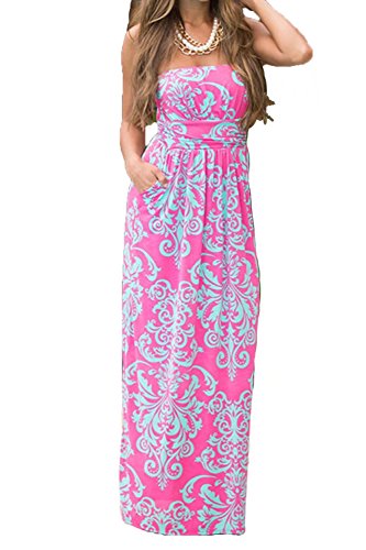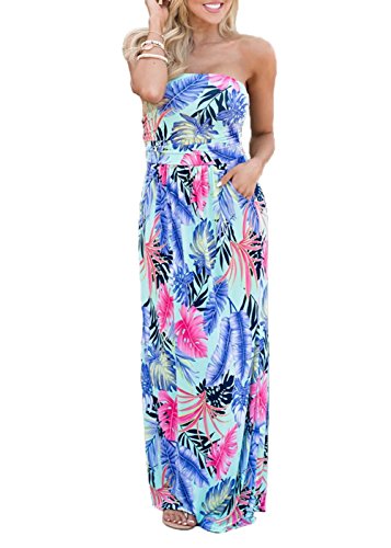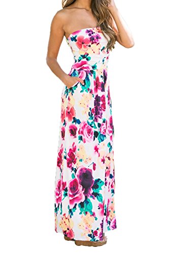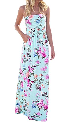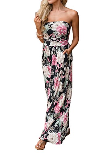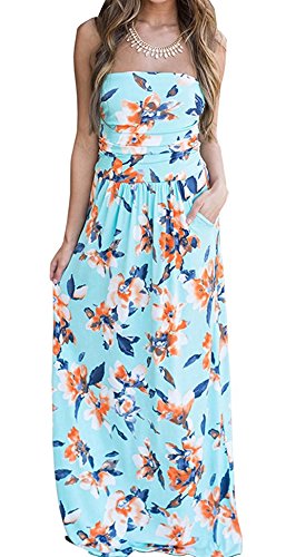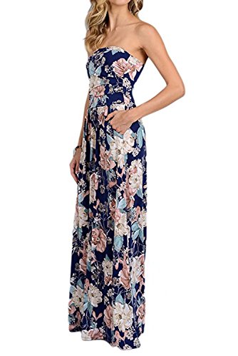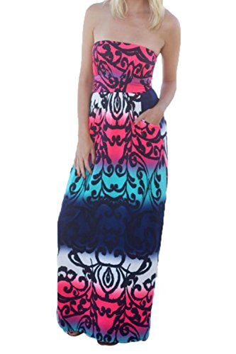 Wrapped chest,Maxi Length A-line Strapless Vintage Dress,Retro and Sexy,Two Side Pockets