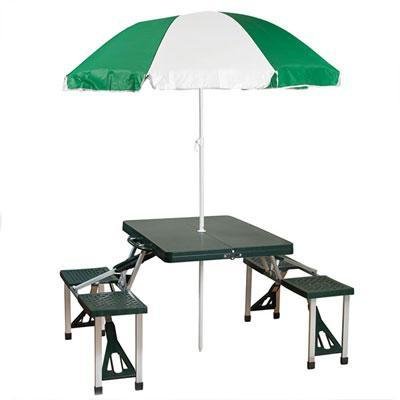 Studio : Stansport Publisher : Stansport Binding : Misc. Product Description Create a comfortable picnic area wherever you go with the Stansport Picnic Table and Umbrella Combo Pack. This handy table unfolds in a flash and transforms into a picnic table with four seats. It even includes an umbrella to keep you cool in the shade. This umbrella offers an adjustable height and push-button quick latch. The table is made from high impact plastic with an aluminum frame, so it’s lightweight, durable, and easy to transport. Perfect for parks, tailgating, backyard get-togethers and more. About Stansport Stansport welcomes you to their world, the Great Outdoors, 'Where we make camping fun.' Stansport believes that camping is a timeless activity for the young and old where a roaring campfire is more than just a heat source, but also the gathering place for stories of the past, present, and future. Camping means a simple time to share of ourselves, get to know each other, and experience all the wonderment of Mother Nature. The people at Stansport have travelled the world to bring you the best values in camping equipment. Portable picnic combo set. High-impact plastic and aluminum. Folds easily. Includes durable umbrella. Weight capacity: 200 lbs. per bench. Dimensions: 33.5L x 25.5W x 35.75H in.. 0