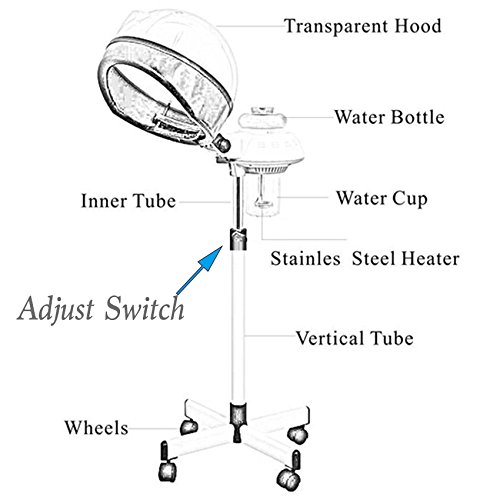 Here is Product Specifications: - Material: Premium PVP Stainless Steel - Height: Adjustable from 46.8 to 57.4in ( 120 to 146cm ) - Voltage: 110V - Plug: US standard Plug - Package Content:1 x Adjustable Hair Steamer