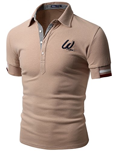 -. Title : Doublju Mens Casual Short Sleeve Point Polo T-shirt , Taupe , X-Small