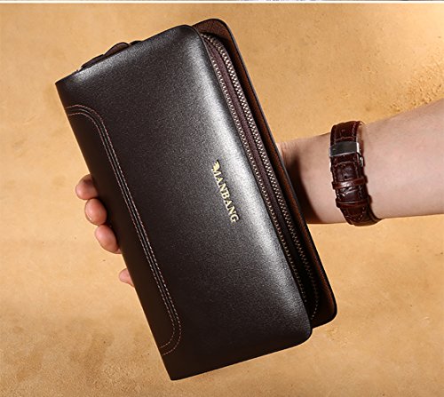 -. Binding : Apparel -. Brand : MANBANG -. ClothingSize : One Size -. Department : mens -. Feature : Premium wallet for men with classic design / Material: Genuine cowhide leather, soft and comfortable / Dimensions: L 8.39'' x W 4.72'' x W 1.57'' , great size fits men's use / Big Capacity: 12 card slots, 1 ID window, 3 receipts compartment, 1 inside zipper slot, 2 long slots for money / Satisfaction Guarantee: If you aren't completely happy with our leather belt, simply return it within 30 days for a full, no questions asked refund -. ProductGroup : Apparel -. ProductTypeName : ACCESSORY -. Size : One Size -. Title : Men's Italian Genuine Leather Clutch Handbag Organizer Checkbook Long Wallet