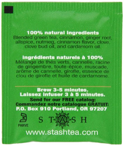 Stash Tea Green Chai Tea, 100 Count Box of Tea Bags in Foil