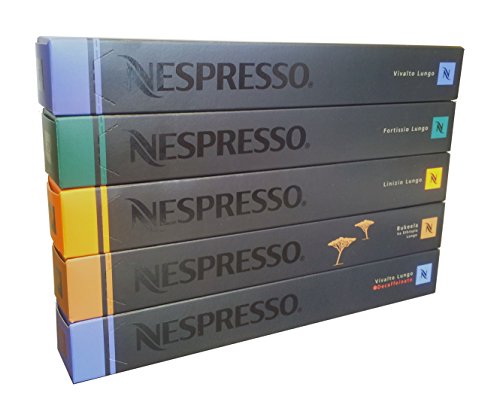 50 Nespresso OriginalLine Lungo Pack Variety: Vivalto Lungo, Fortissio Lungo, Linizio Lungo, Decaffeinato Lungo, Bukeela Lungo, 50 Count - ''NOT compatible...