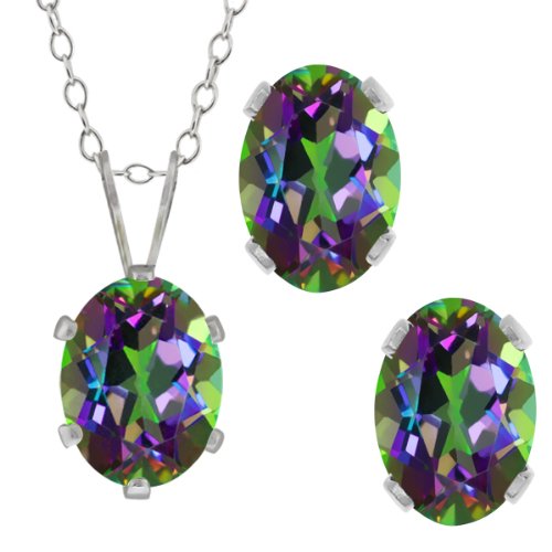 -. Binding : Jewelry -. Brand : Gem Stone King -. Color : Green -. Department : womens -. Feature : CARAT TOTAL WEIGHT - 3.50 CT (This item is proudly custom made in the USA) / MEASUREMENT - 8x6mm and 7x5mm Oval Green Mystic Topaz Pendant Pendant Earrings Set Crafted in 925 Sterling Silver With an 18 Inch 925 Sterling Silver Chain / CRAFTED - in High-Quality Lead Free 925 Sterling Silver that delivers exceptional shine and ultimate protection. / TOTAL SATISFACTION GUARANTEE - When you order today, you're protected. The item comes with a No questions asked money back guarantee combined with world class customer service. Free Return and Refund and One Month Warranty and Free Second Day Delivery for Amazon P.R.Ime! / Gemstones may have been treated to improve their appearance or durability and may require special care. -. Model : WRC-0113-OV-MT-GR-MT-GR-SS -. MPN : WRC-0113-OV-MT-GR-MT-GR-SS -. NumberOfItems : 1 -. PackageQuantity : 1 -. PartNumber : WRC-0113-OV-MT-GR-MT-GR-SS -. ProductGroup : Jewelry -. ProductTypeName : FINEEARRING -. Title : 3.50 Ct Oval Mystic Topaz Gemstone 925 Sterling Silver Pendant Earrings Set