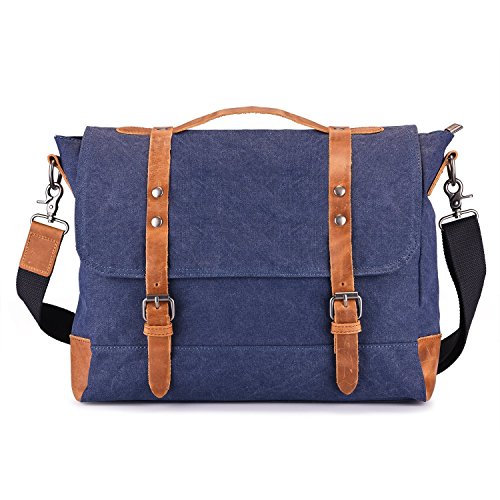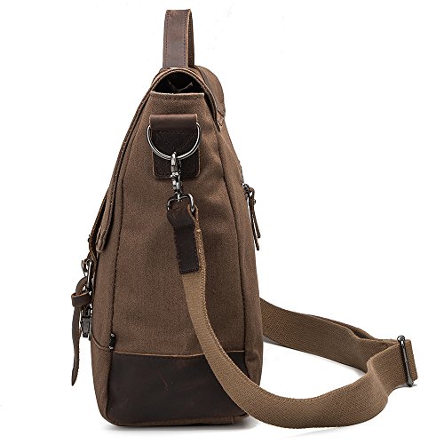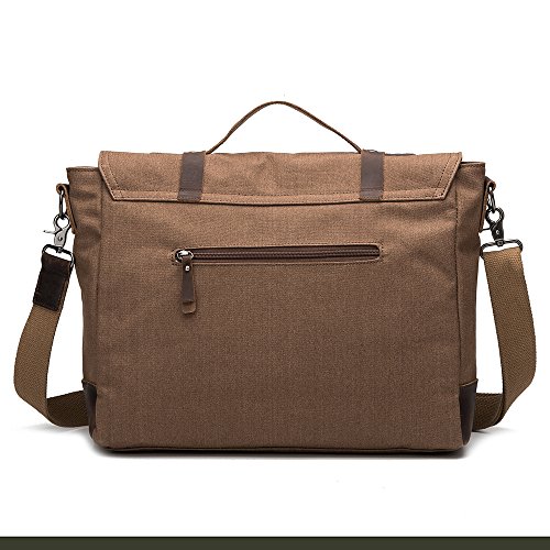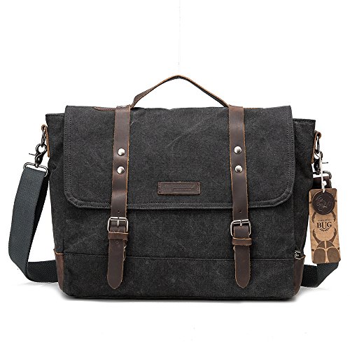-. Brand : BUG -. Department : mens -. Feature : ATTENTION!!Bag color may vary from the pictured sample. High density cotton canvas, decorated by 100% REAL crazy-horse leather. / Easy and comfortable to carry. Fashion vintage design, well sewn craftsmanship.Various pockets inside,super large capacity for business, travel and everyday use. One messeger bag for all your activities in different occasions:sports/travelling/photograpy/schools/outdoors/business trip /shopping /office. / Bag approx dimensions are 15.16x4.13x11.81 inch/38.5x10.5x30cm(LxWxH),durable top handle and adjustable shoulder strap from 28.5-52 inch/72.5-132cm. / Nicely designed, not too formal nor casual, perfect for work and daily use. Inside with zipper closure, maximum security for valuables is guaranteed. / Inside is nicely lined with durable fabric, ample room for your iPad, A4 size files, cellphone, wallet, keychain, cigarette and more(accommodate a 14 inch laptop).Back exterior with closure zipper pocket can also store your other daily carrying. -. ProductGroup : Apparel -. ProductTypeName : LAGE -. Size : One Size -. Title : BUG Canvas Leather Trim Messenger Bag, Crossbody Briefcase