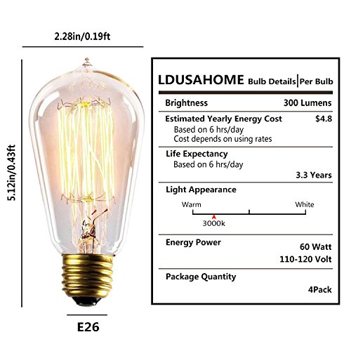 - Bulbs Introductions: Incandescent Bulbs ST58 Save Up to 80% Energy,Warm Light E26/E27 Base Screw 60W 120V 3000K Dimmable Glass