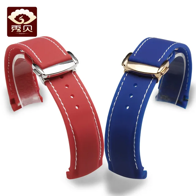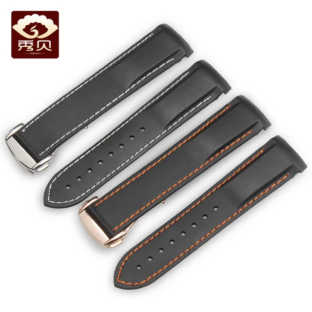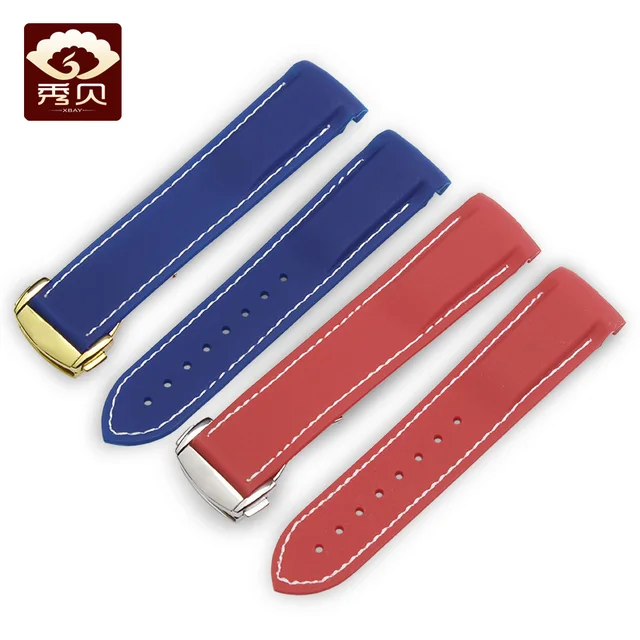 [해외] 부드러운 실리콘 고무 손목 시계 omg 블랙 화이트/orange 스레드 블루 레드 컬러 스트랩 스틸 배포 버클 20 미리메터 22 미리메터