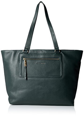 -. Feature : Pebbled tote featuring extended shoulder straps, exterior zip pocket, and 14-inch laptop-accommodating width
