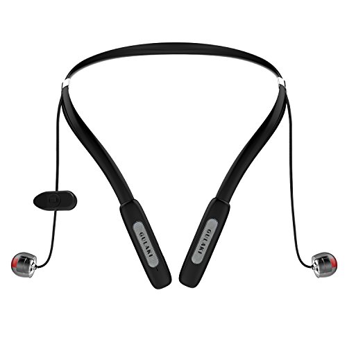 -. Feature : BLUETOOTH 4.2: Bluetooth 4.2 maximum pairing range can be 33ft, can connect to two different devices in 10 meters range simultaneously, no disconnection while you are doing exercise / LONG BATTER LIFE: GULAKI Bluetooth Headphone support 8 hours of music playback/talk time. Fully recharge in just 90 minutes / COMFORTABLE IN-EAR DESIGN: It helps snug the earphones in your ear canal in a cozy way and also block unwanted noises to some extent / ERGONOMIC ENGINNERIN: Neckband with wire clip design ensures a premium and lightweight feel. You can wear it for Parkour, Rock Climbing, Mountain Biking. You could also do lift weights, do some intense cardio training that includes jumping or other high energy movements / WHAT'S IN THE BOX: 1 x Neckband Bluetooth Headphones, 3 x Ear Tips, 1 x Micro USB Cable, 1 x Travel Pouch, 1 x Cable clip, 1 x User guide, 12-month worry-free warranty and friendly customer service