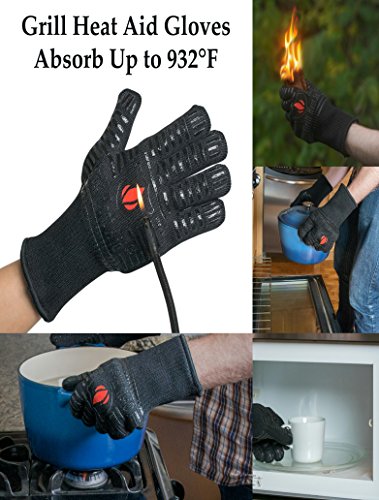- EXTREME HEAT RESISTANT GLOVES The Grill Heat Aid glove is rated to resist up to 932 degrees Fahrenheit, so stock up on charcoal, propane, oil and wood, and get your smoker, fireplace, and deep fryer going