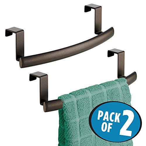 mDesign Over-the-Cabinet Curved Kitchen Dish Towel Bar Holder - Pack of 2, Bronze