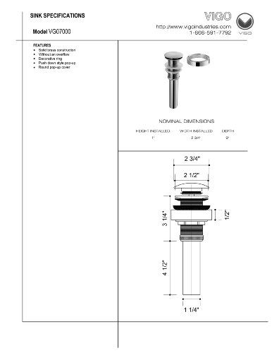 -. Title : VIGO VG07000ARB Bathroom Faucet Vessel Vanity Sink Pop Up Drain Stopper without Overflow and Mounting Ring