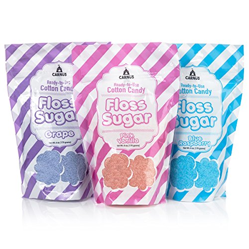 Cotton Candy 3 Flavor Floss Sugar Pack by Carnüs | Three 6oz. Resealable Pouches – Pink Vanilla, Grape, & Blue Raspberry Ready-to-Use Floss Sugar | Carnival Quality Cotton Candy