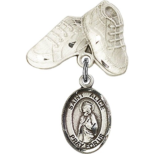 -. Title : Sterling Silver Baby Badge with St. Alice Charm and Baby Boots Pin 1 X 5/8 inches