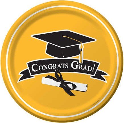 Graduation School Colors School Bus Yellow 9-inch Paper Plates 18 Per Pack