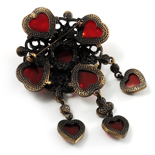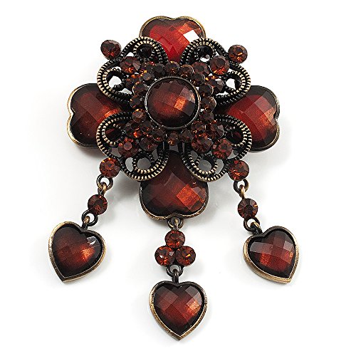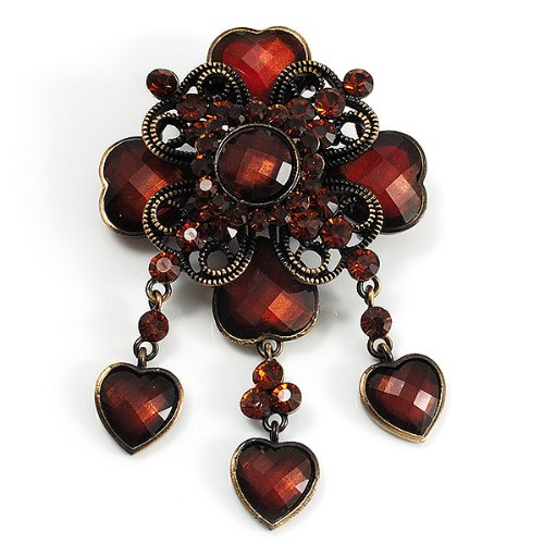 -. Title : Vintage Amber Coloured Crystal Charm Brooch (Bronze Tone)
